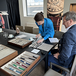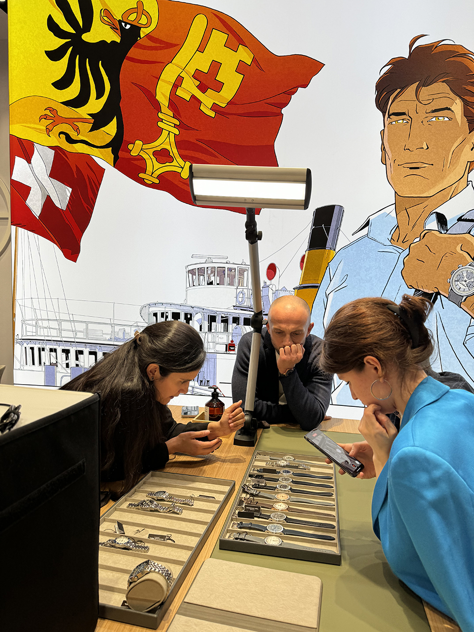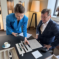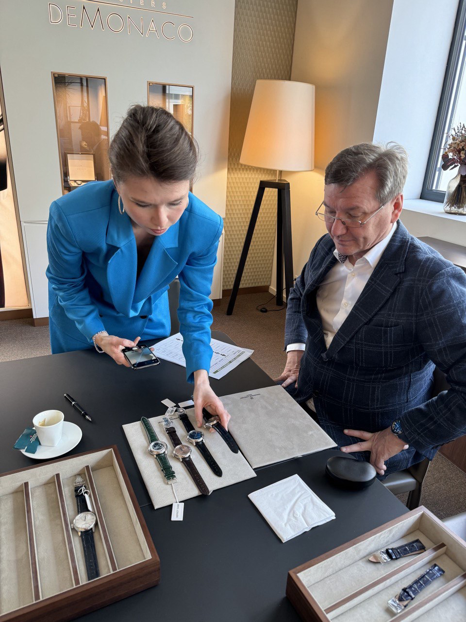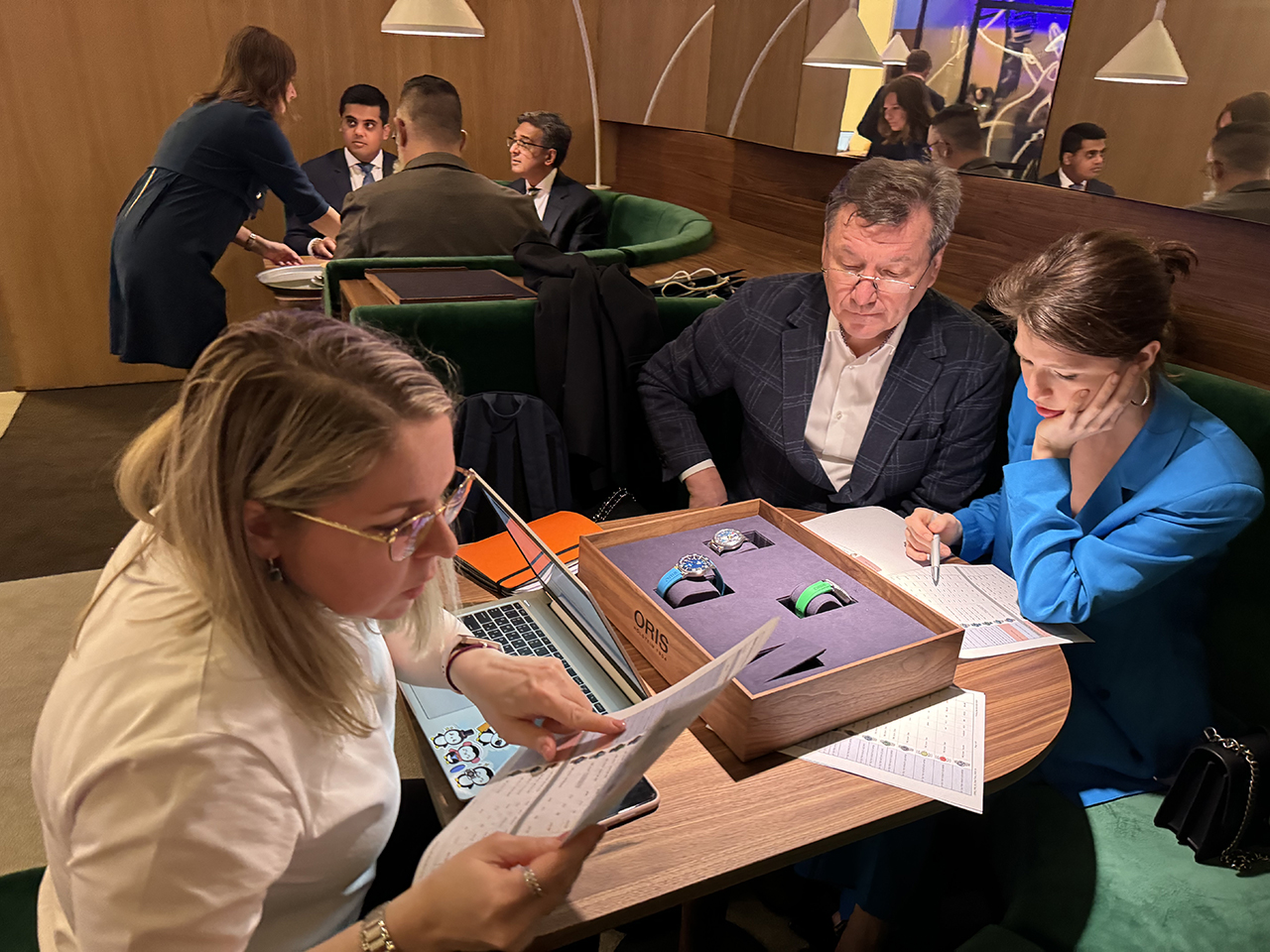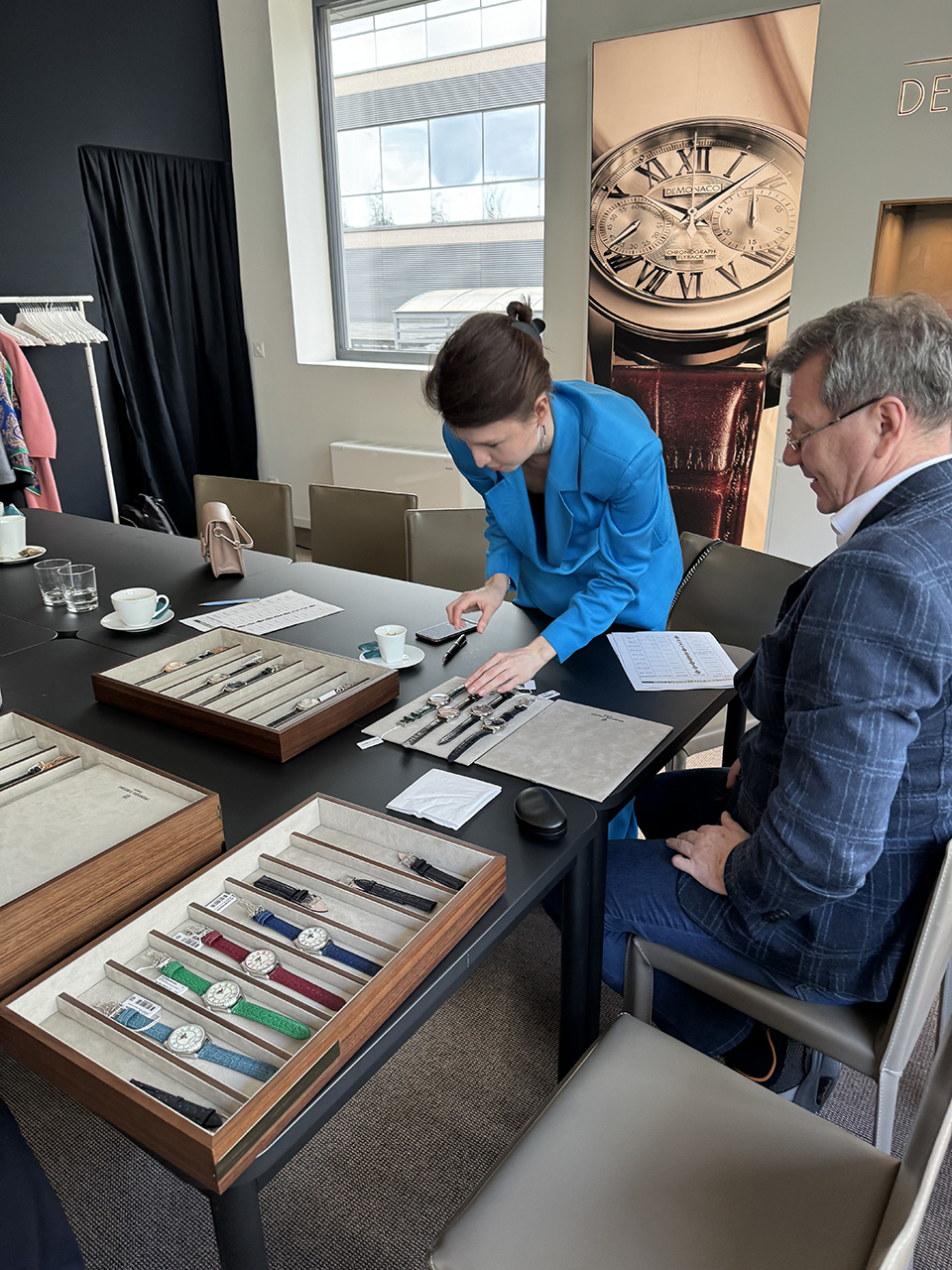 Как правило, на подобных встречах с представителями швейцарских брендов сразу формируется заказ на грядущий год. Мы смотрим новинки в паллетах, обращаем внимание на размер, диаметр часов, на то, как устроен корпус и циферблат, примеряем на руку разные модели. Некоторые бренды заранее формируют отдельные палетки для Китая, Европы, России, потому что предпочтения у всех разные. Например, в Китае любят 36-38 диаметр, нам такой маловат, для России больше подходит 42 диаметр. После просмотра и примерок мы сразу отмечаем в листах, какие модели и в каком количестве хотим заказать. Когда заказ формируется на выставке, большая вероятность, что мы получим все модели в нужном количестве в кратчайший срок. Фабрика произведет их специально для нас.