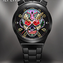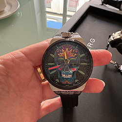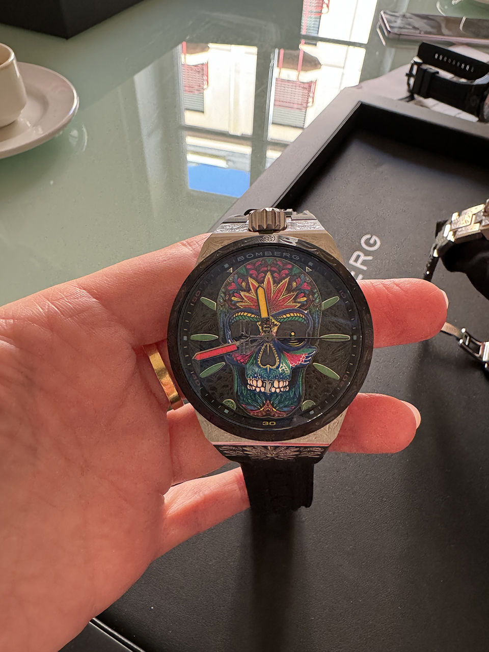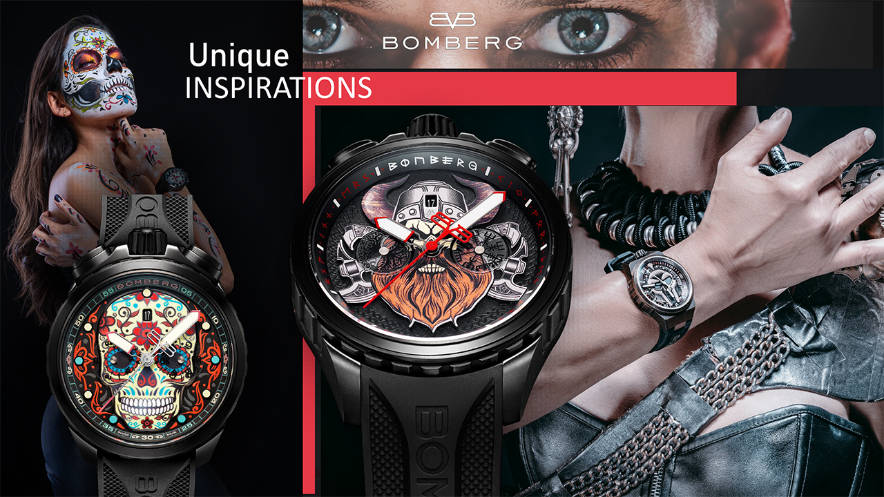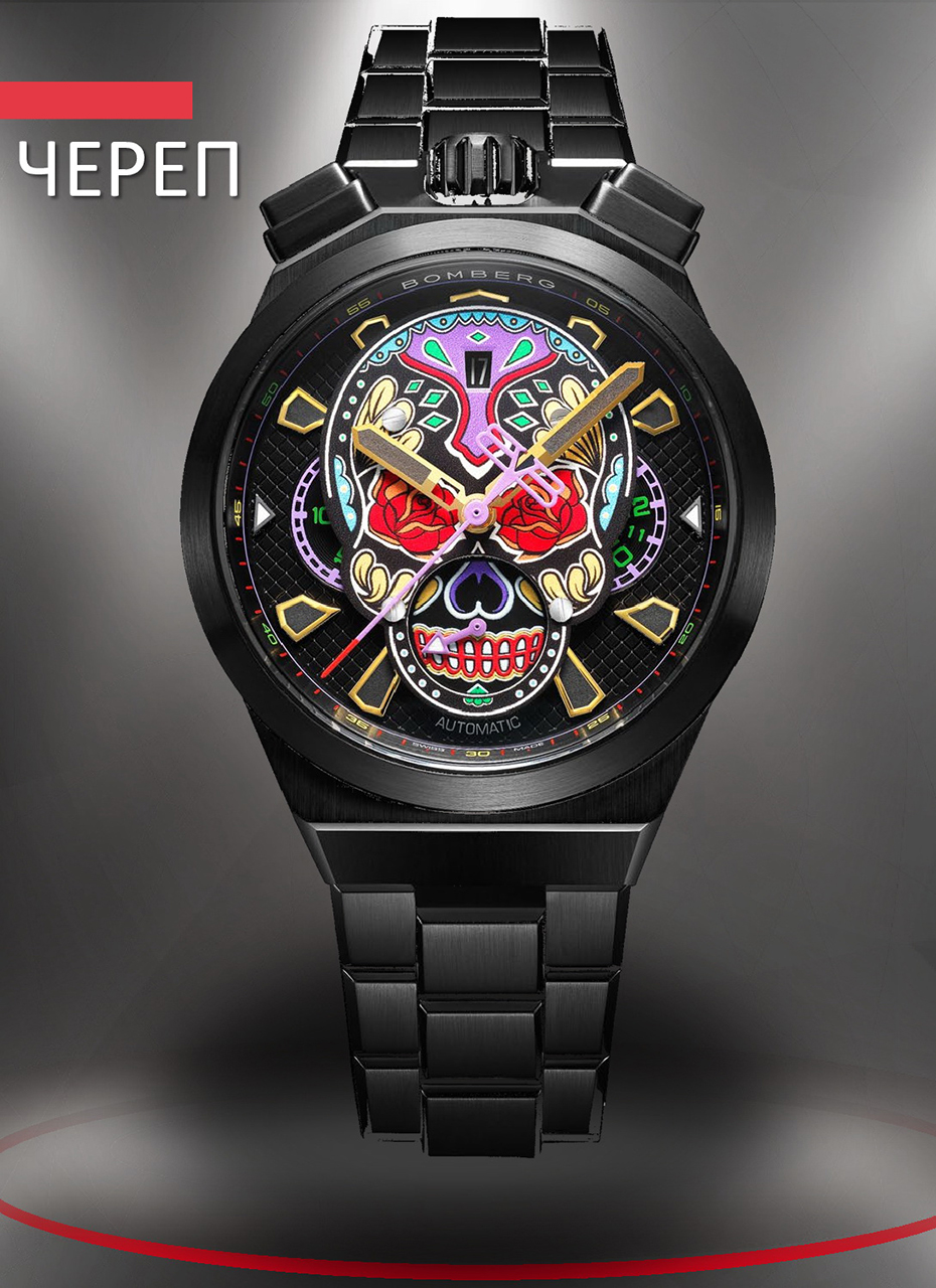 Из новых для себя мы открыли швейцарский бренд хорошего качества с авторским дерзким дизайном - Bomberg. Дизайнер бренда David Sanchez (Дэвид Санчез) в свое время был автором бестселлера Aikon у MAURICE LACROIX. Модели Bomberg очень яркие, эпатажные, креативные, многие украшены черепами, но, как объяснил сам дизайнер, у мексиканцев черепа символизируют не то, что у нас. Мексиканцы верят в жизнь после смерти. И даже День поминовения мертвых превращают в карнавал - для них это веселый праздник. А для байкеров, к примеру, череп - это символ единства всего человечества во всем мире. Они узнают друг друга по такой символике.