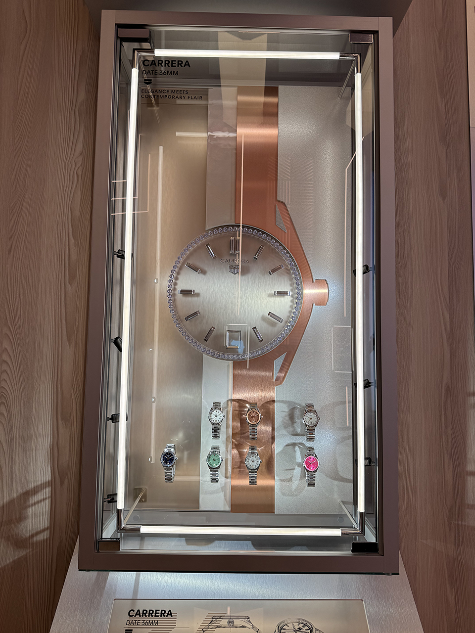 TAG Heuer Carrera Date 36 mm - новая версия культовой Carrera с притягательным лиловым циферблатом: спиральное сатинирование и градиентная разметка добавляют глубины и динамики при любом освещении, а бриллиантовые индексы дают деликатный, но уверенный акцент роскоши.