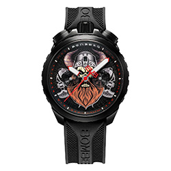 Стильные часы придутся по вкусу уверенным личностям готовым с легкость заявить о себе и ярко продемонстрировать неординарность характера. Bolt-68 Heritage Viking. Часы-трансформер с хронографом и секундомером. Секундомер с точностью 1/10с. Массивные заводная головка и кнопки управления хронографом находятся в верхней части корпуса. Циферблат декорирован изображением викинга (свирепый и отважный мужчина пришедший из Скандинавии) и эмблемами и значками из скандинавской мифологии. Циферблаты хронографа выполнены в виде важнейших символов викингов Иггдрасиль (древо жизни) и Вегвисир (северный компас). Борода викинга украшена люминесцентным составом. Мечевидные стрелки с люминесцентным покрытием.